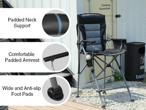 Tall Director Chair with Padded Neck Support, Soft Armrests & Anti-Slip Feet
